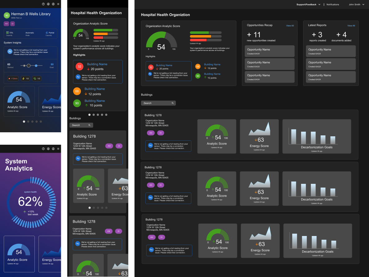 Exploratory initiative to quickly explore how building health data could be displayed and communicated. The rapid ideation initiative was an effort tasked to myself and another designer on our team to quickly ideate on how we could display building health data in a more forward thinking direction.
